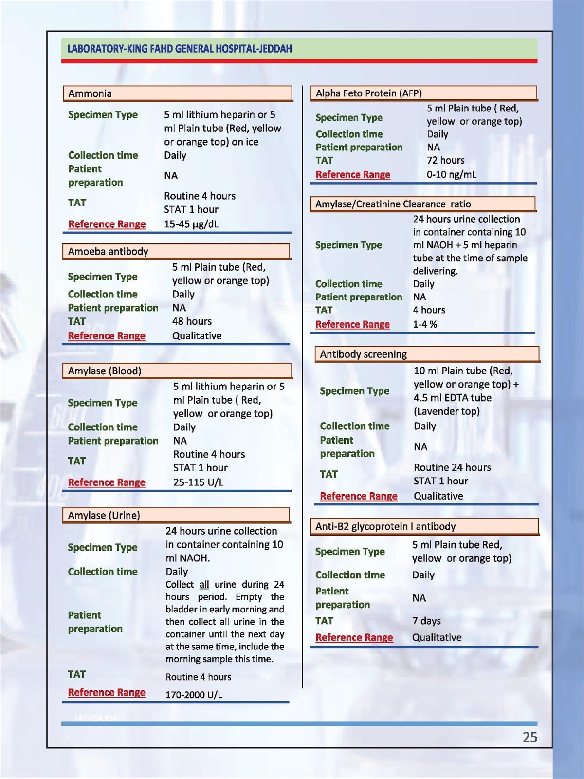 Laboratory service guide LSG................لان الكل بيمضي انه موافق (الأقسام المعنيه -بما فيهم جهات التعامل معاك ك referral lab )علي طريقه تقديمك لهذه الاختبارات